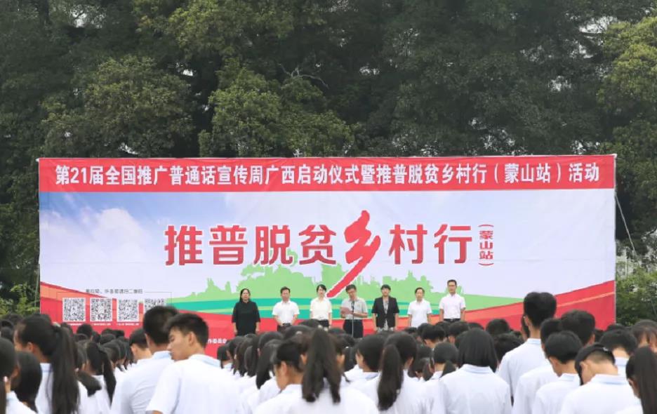 9月10日上午,第21屆全國推廣普通話宣傳周廣西啟動儀式暨推普脫貧鄉(xiāng)村行(蒙山站)活動在風光旖旎、山川秀美的蒙山縣舉行。隨志愿者一行,皇氏乳業(yè)把普通話和愛心牛奶帶到了鄉(xiāng)村。